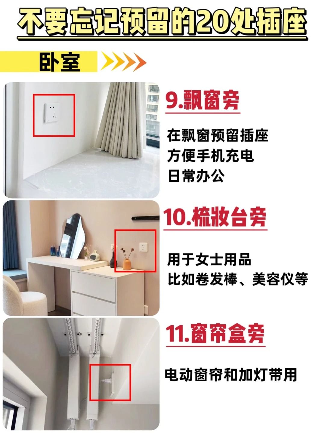 🌟下面我来分享下我们家水电定位必定要考虑到的这20处插座位,每个位置都非常贴合生活实际!