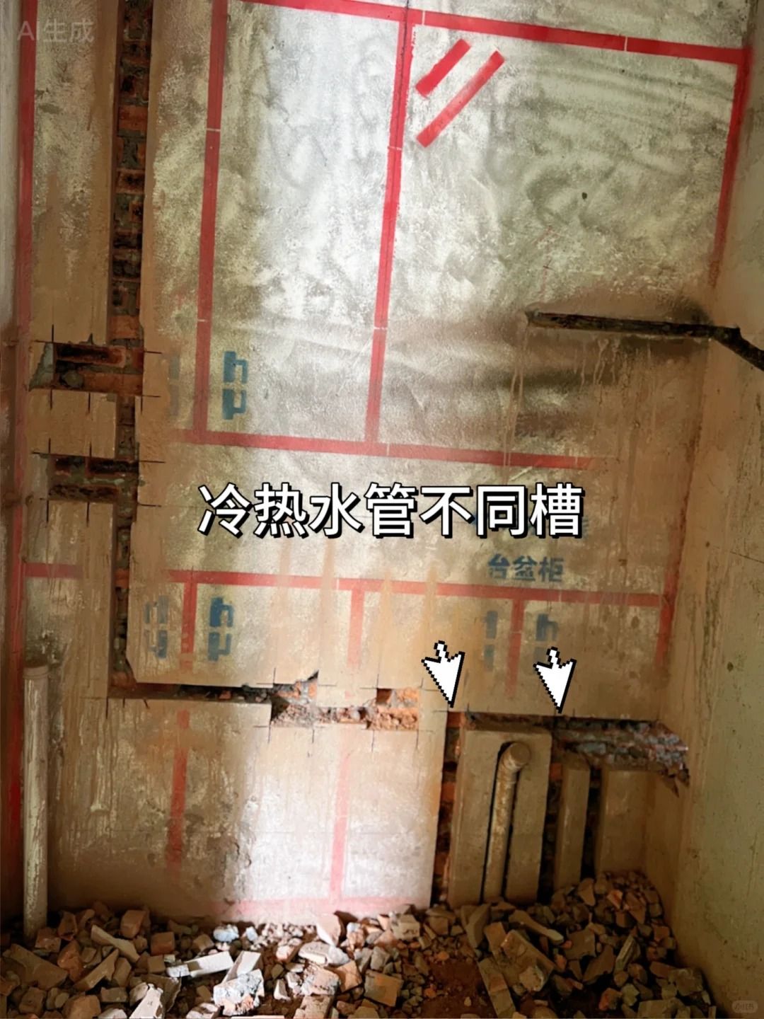 7、冷热水不同槽(冷热水管同槽后期可能完成空鼓和渗水) 8、开槽验收(一定要确认插座,开关面板位置够不够,尽量多不要少,不然后期很麻烦)
