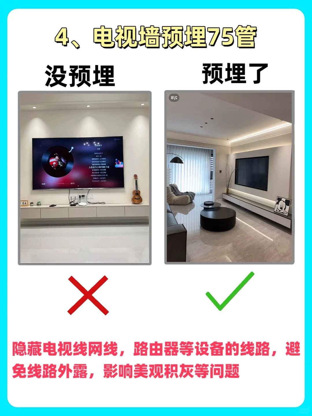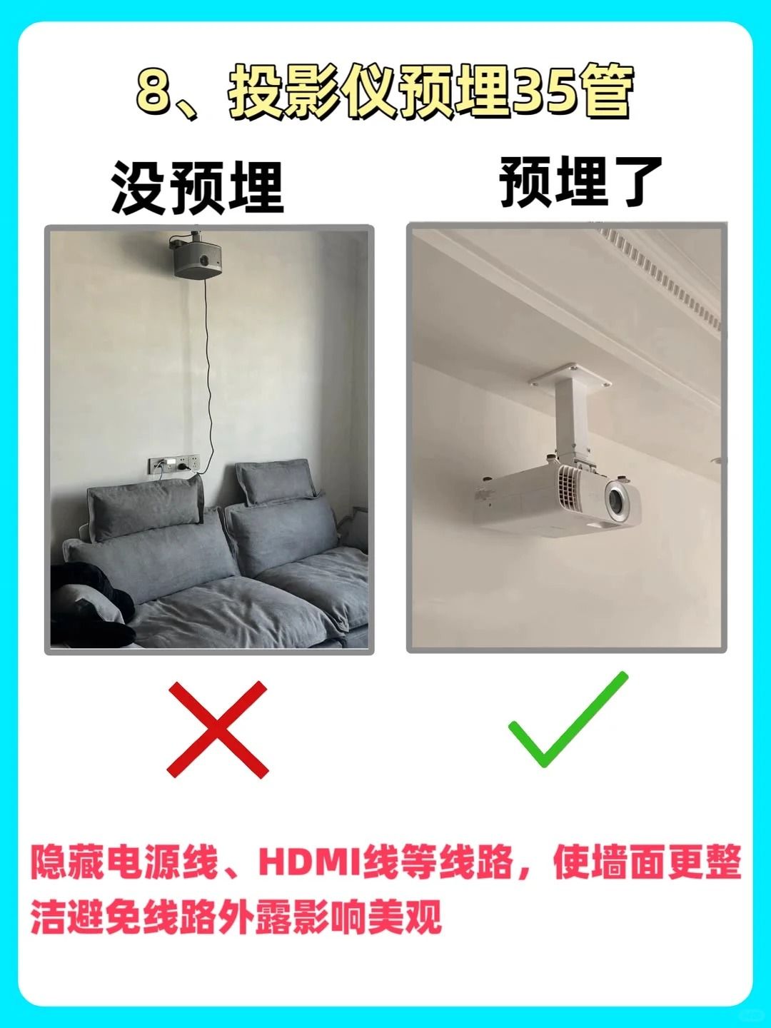 🔍装修前特意做足了攻略,发现预埋也是水电阶段必不可缺的一项呀,少一根都很影响整体的最终效果👌,所以我家在预埋这方面就很仔细地看,而且设计师也提供了不少的建议💡。